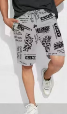 Men’s Printed Casual Shorts | Lightweight Cotton Blend Typography Print Knee-Length Shorts with Pockets