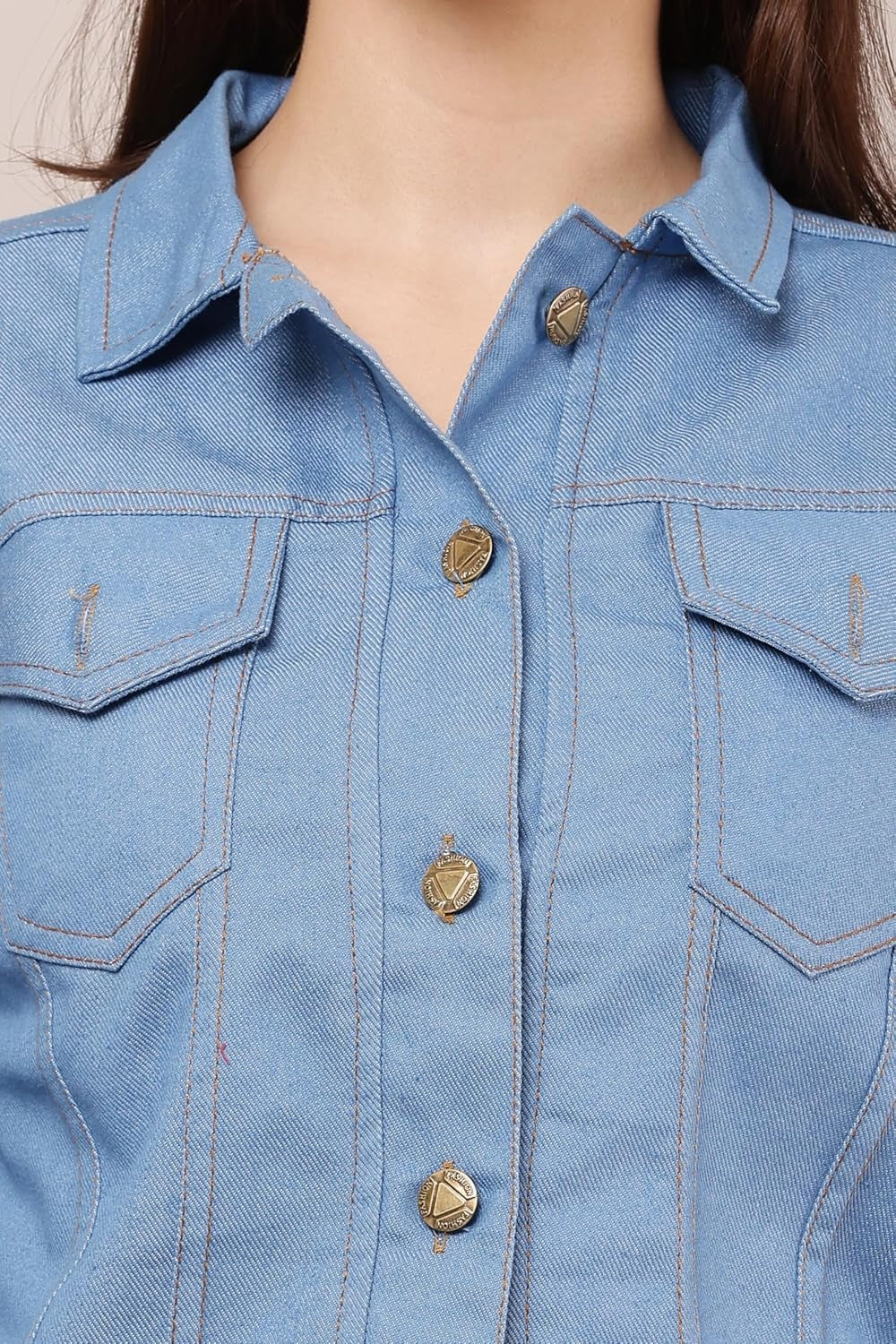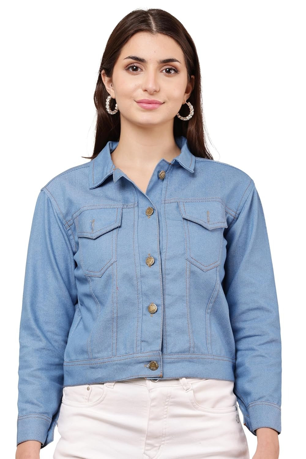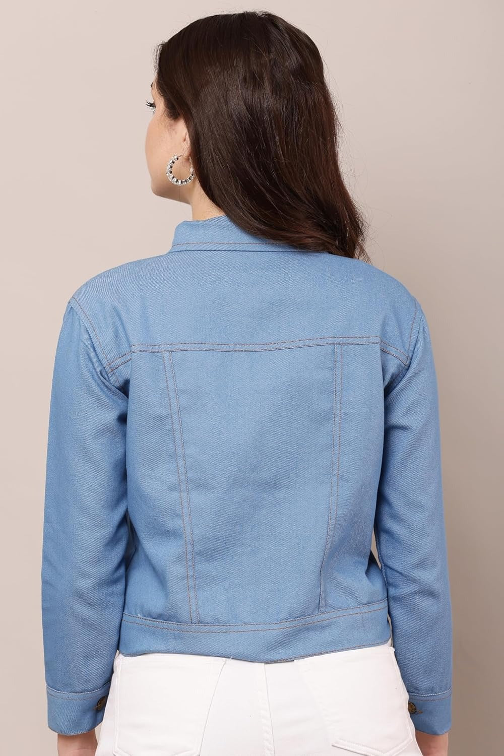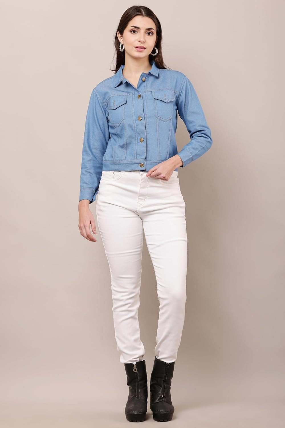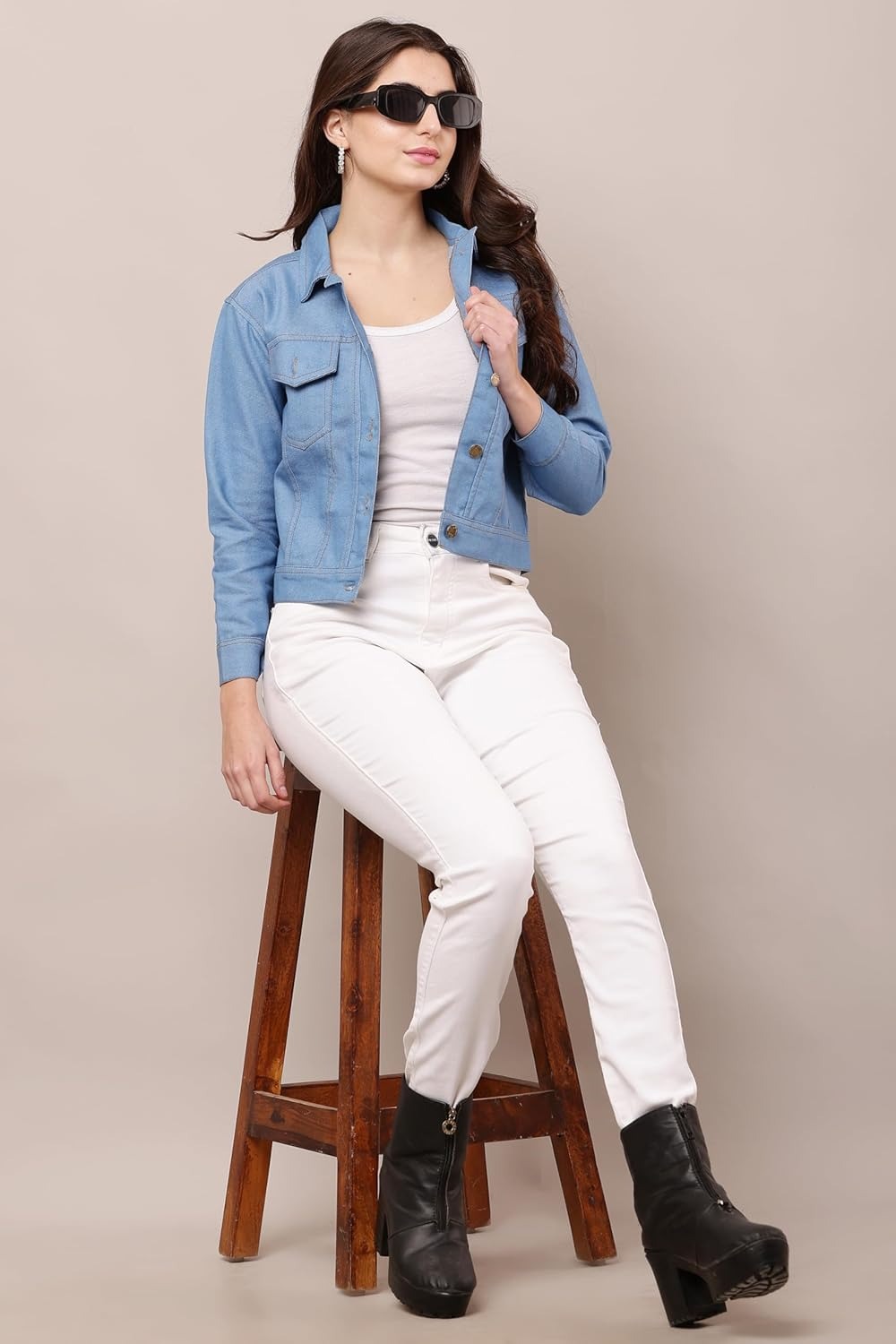 Modern Light Blue Denim Jacket – Slim Fit Cropped Casual Wear for Women