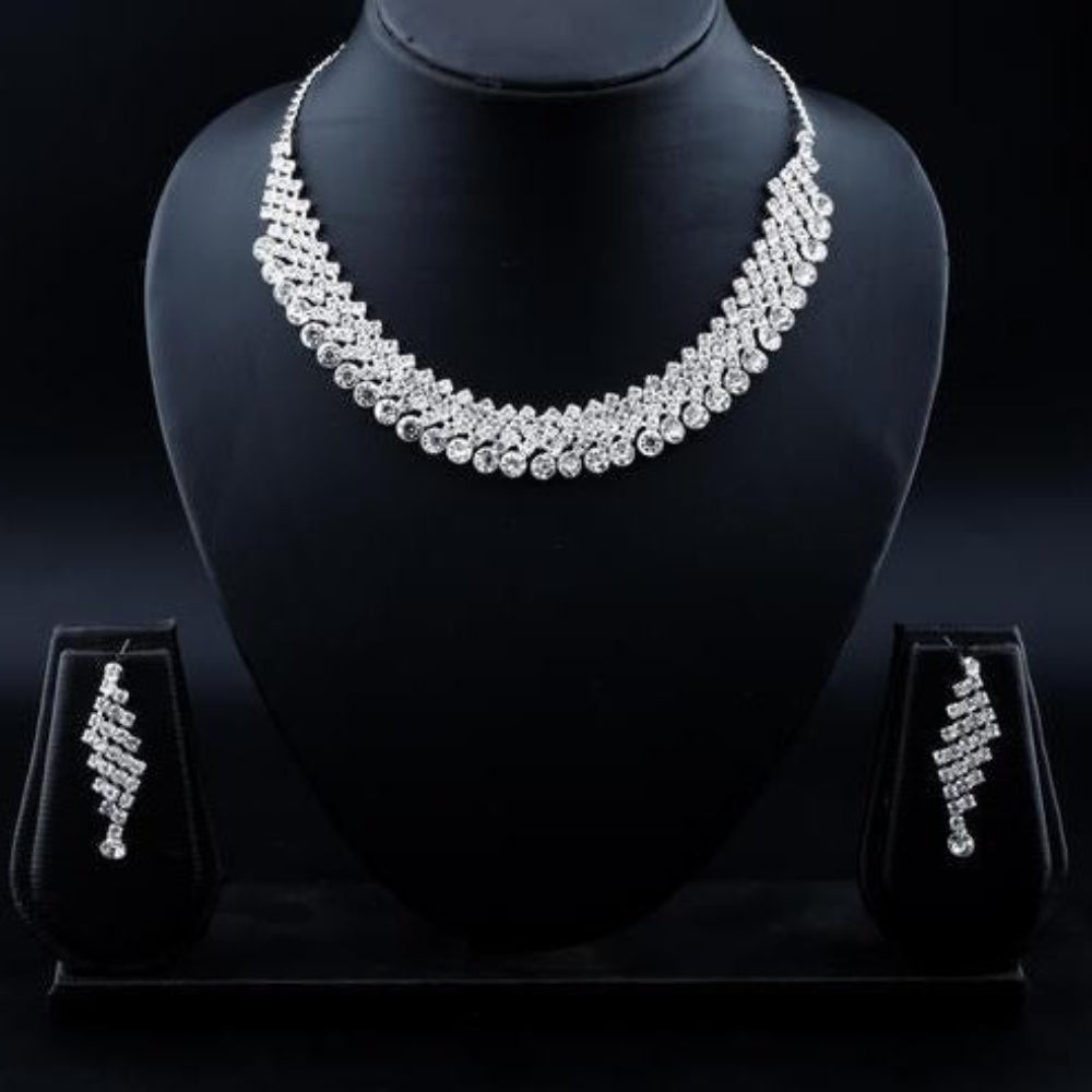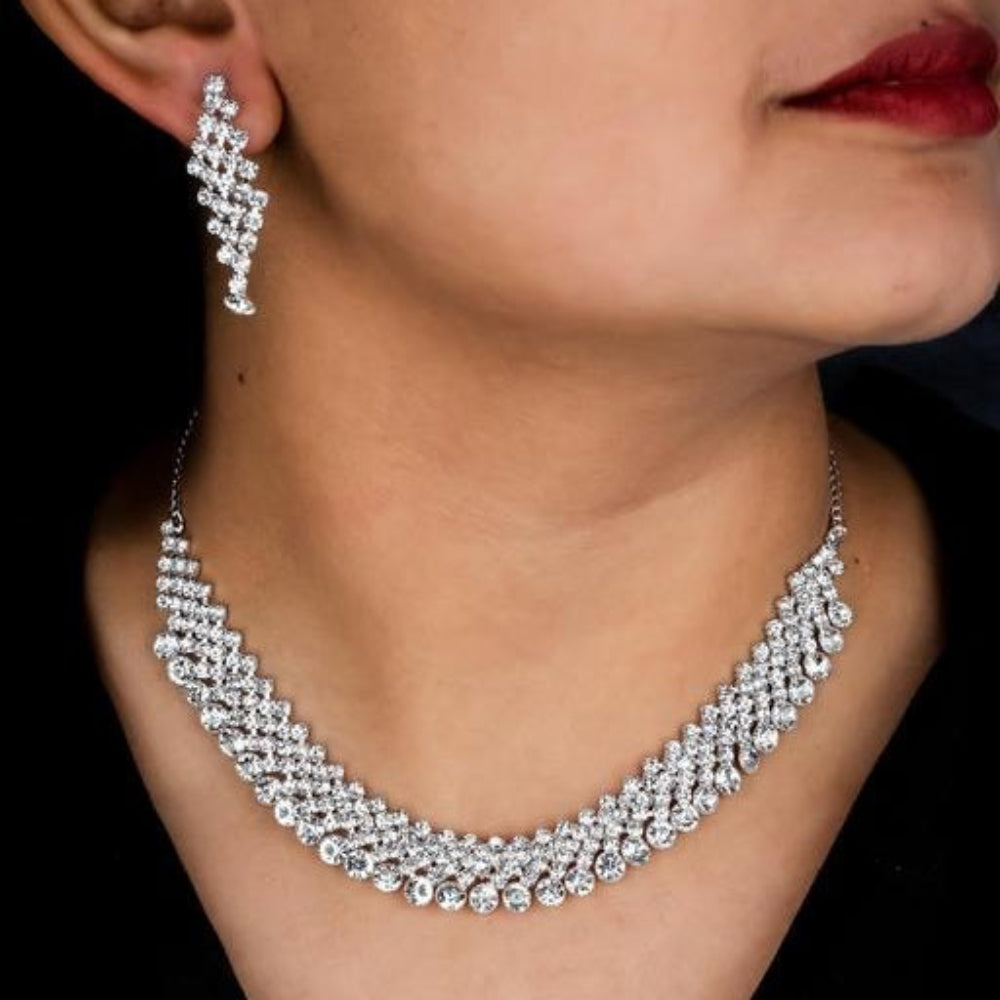 Women’s Silver Stone Necklace Set with Dangler Earrings – Party, Wedding & Festive Jewelry