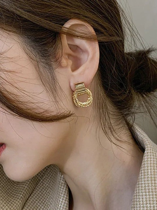 Women’s Textured Gold Round Drop Earrings – Elegant Lightweight Statement Dangle Earrings for Party, Wedding & Daily Wear