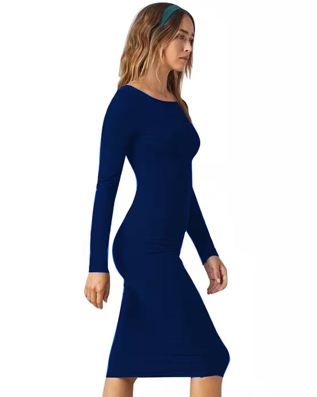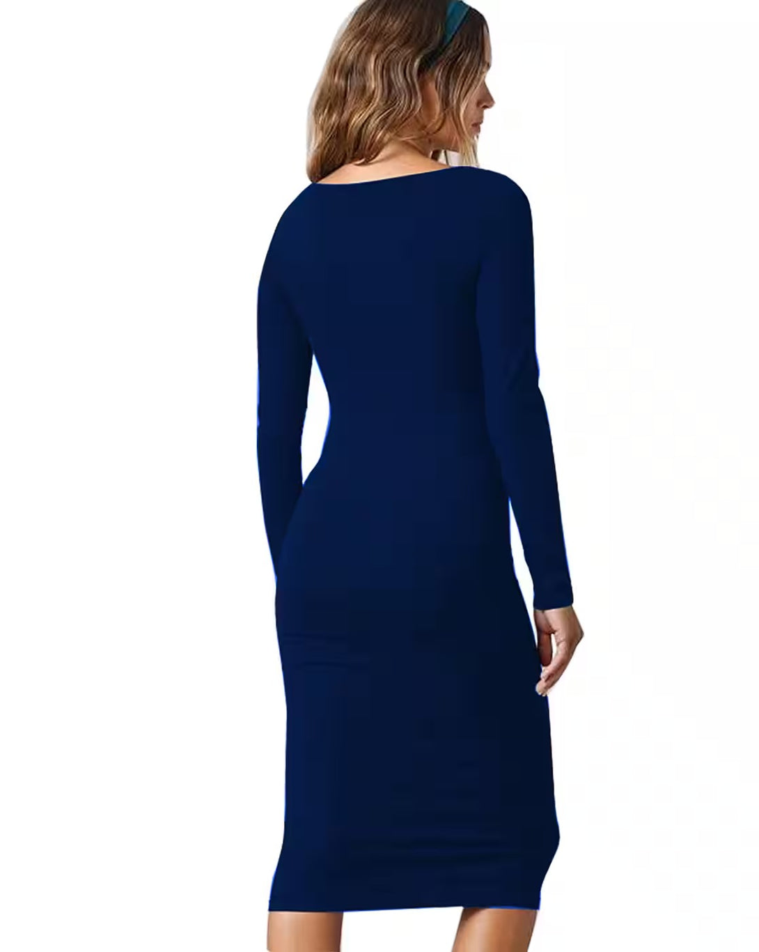 Women's Long Sleeve Navy Midi Dress – Bodycon Fit, Soft Stretch Fabric, Trendy Party Wear